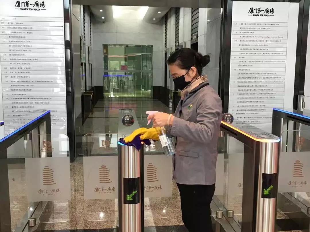 全天候24小時值崗,逐一為全體人員測量體溫,要求進(jìn)出人員佩戴口罩,使用專業(yè)設(shè)備對每個角落消毒……這些已成為廈門第一廣場物業(yè)服務(wù)人員每日的例行工作。廈門第一廣場作為大洲集團(tuán)旗下全海景5A甲級寫字樓,樓內(nèi)有近百家企業(yè)入駐,盡管不少復(fù)工企業(yè)紛紛采取輪班制度,通勤人數(shù)依然較多,為了最大程度確保廣大業(yè)戶的安全,廈門第一廣場根據(jù)集團(tuán)下達(dá)的防控指令,從內(nèi)到外嚴(yán)抓疫情防控,每一處細(xì)節(jié)都不放過。在前期全面疫情阻擊基礎(chǔ)上,組織全體樓內(nèi)業(yè)戶共同行動,共克疫情。